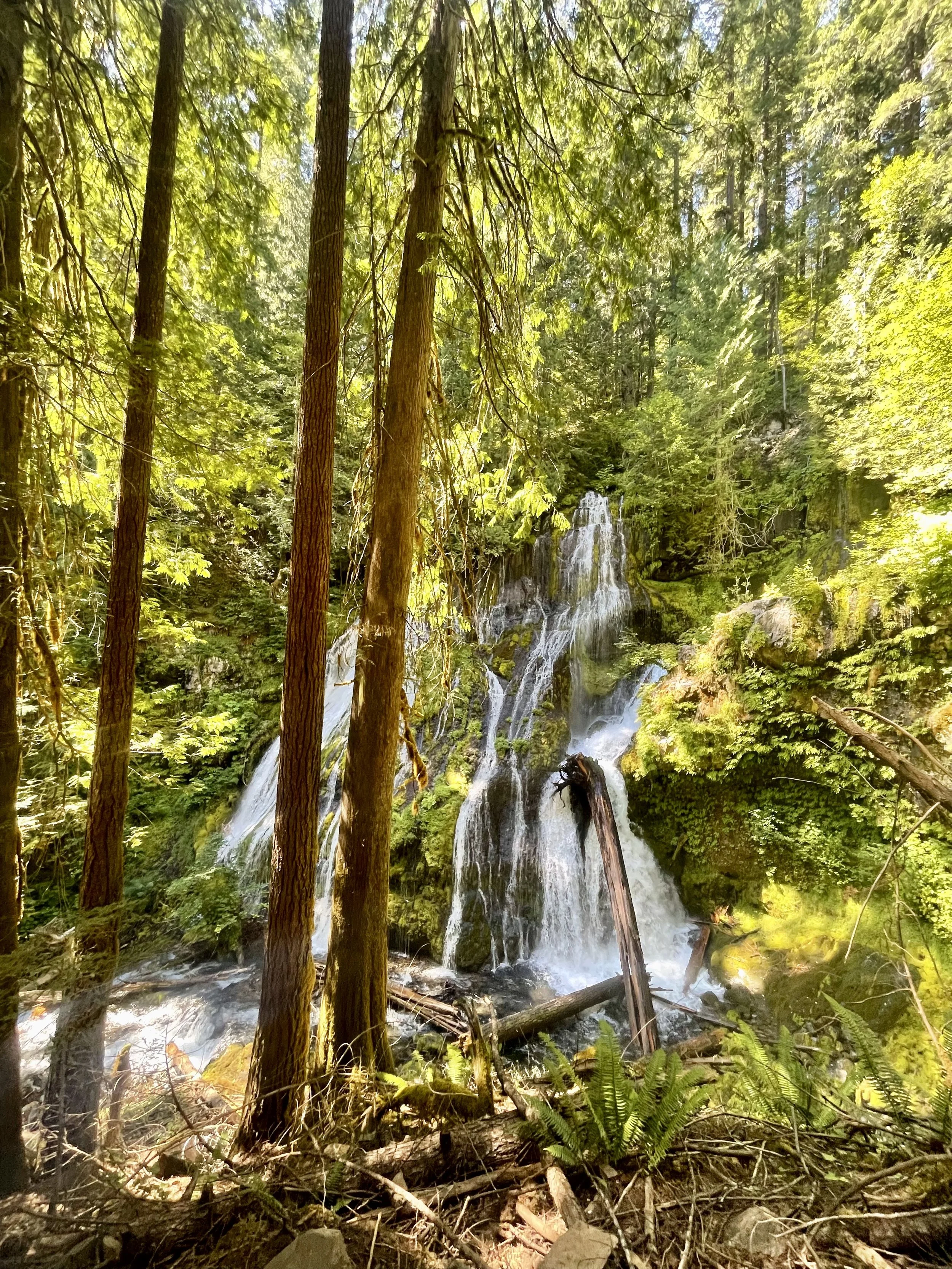 The climb out of Cascade Locks was steep– it’s the lowest point on the PCT, which means there’s nowhere to go but up. We wound our way through dense forest, the air thick with bugs, moss sprawling over every branch, and ferns framing the ever so abundant springs. The views were rare but the forest hummed with life.