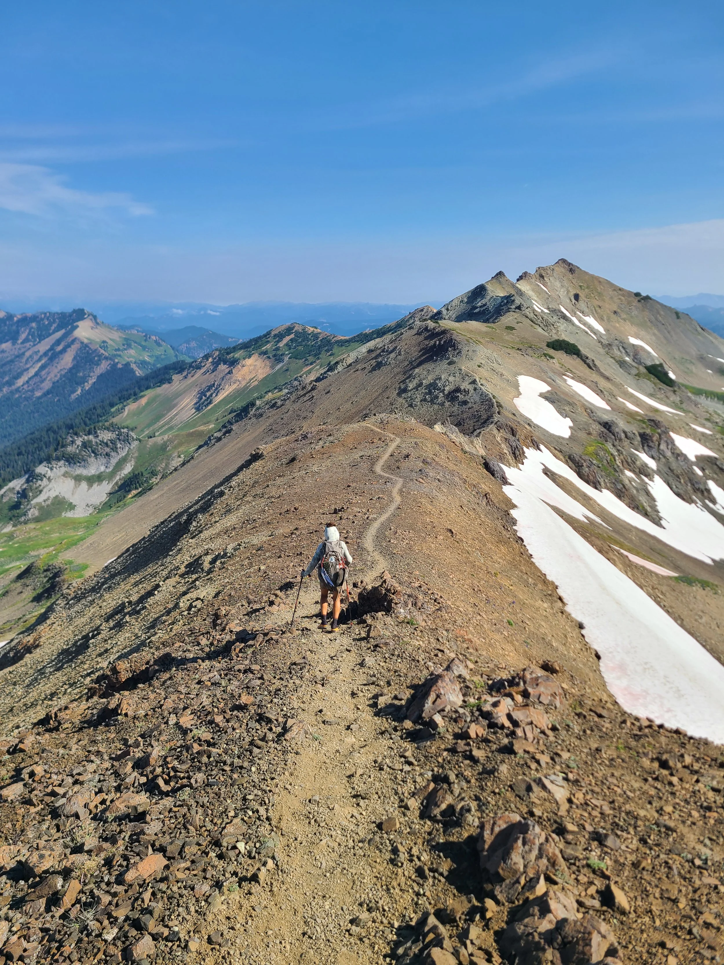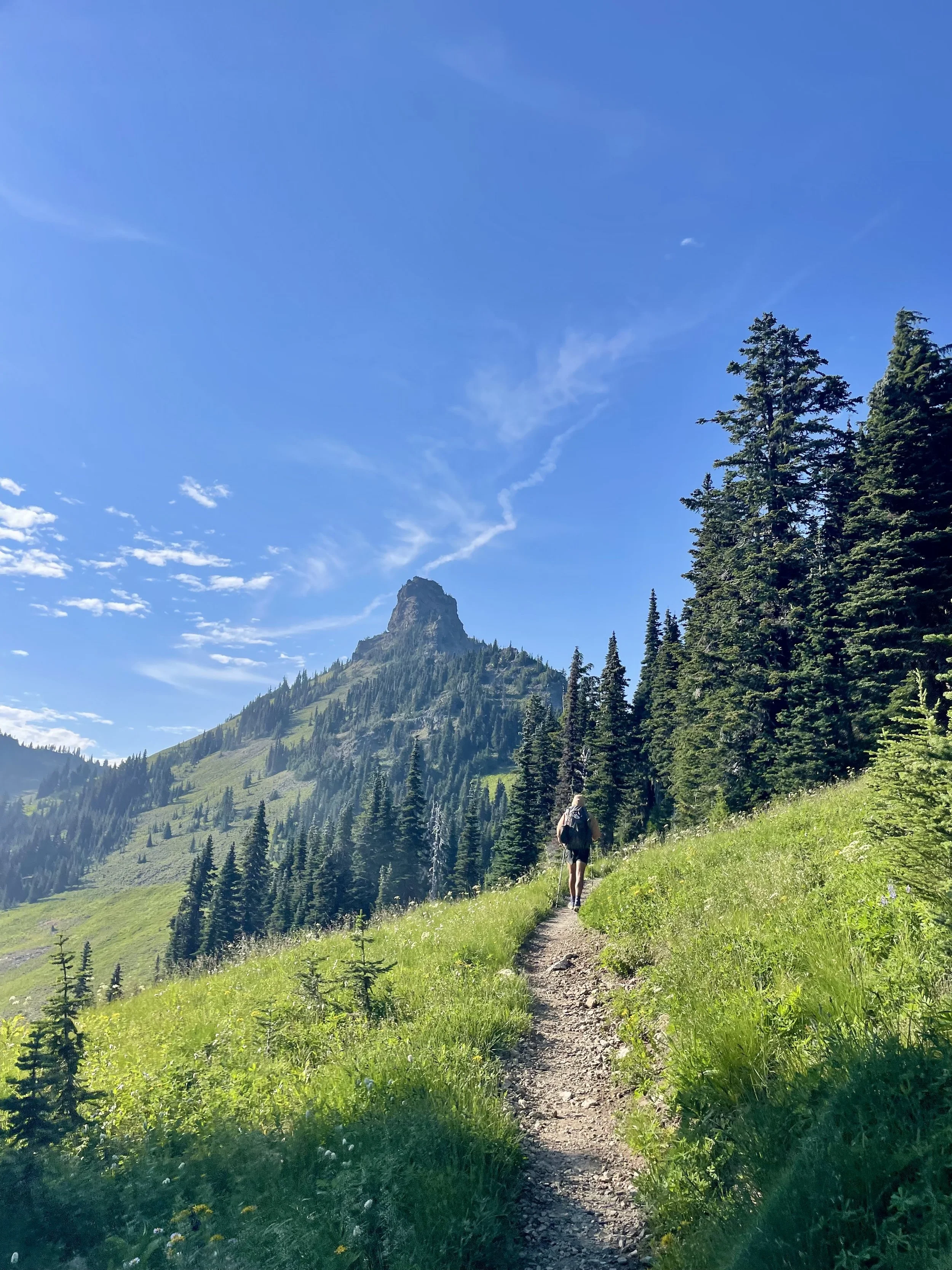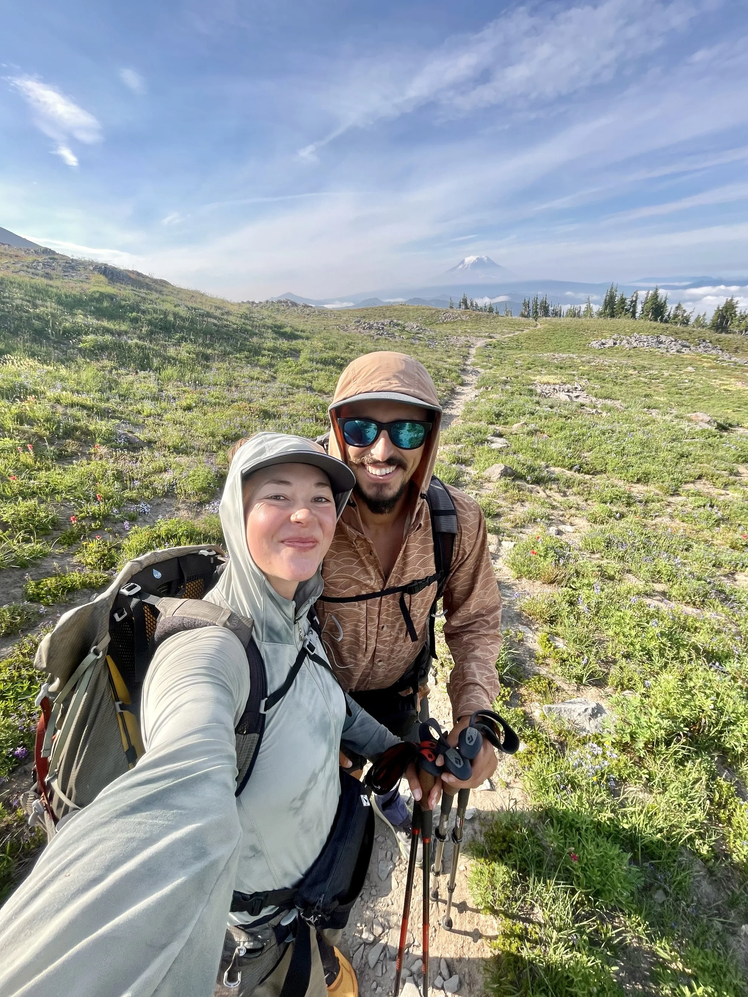 Two years ago, we spent nine days circumnavigating Mount Rainier (Tahoma) on the Wonderland Trail—a bucket list trip that left us awestruck. But nothing compared to seeing her now, from the PCT, on a crystal-clear week when every ridge line felt like the top of the world.