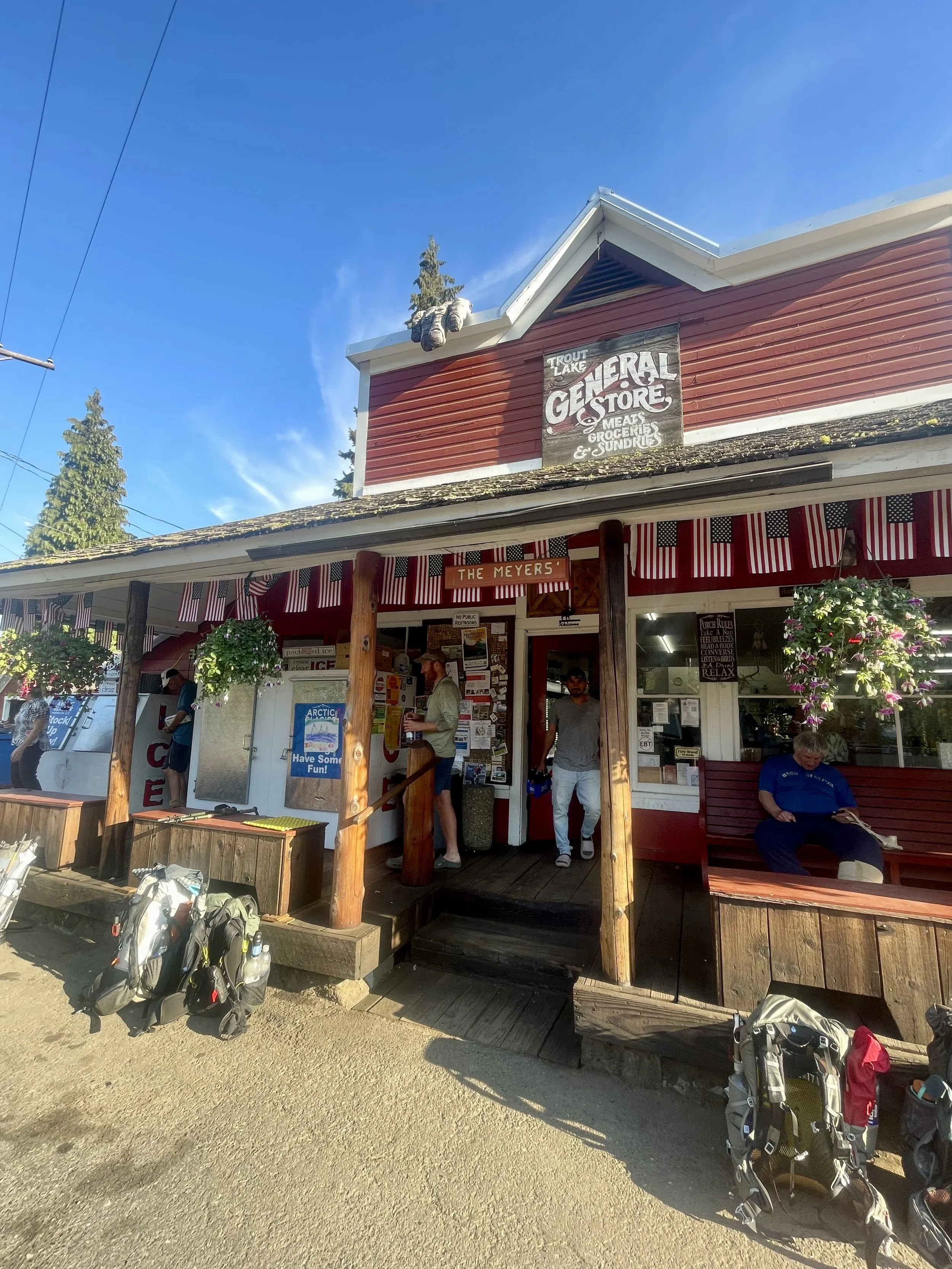 By the time we reached the road to Trout Lake, I was utterly done. We managed to hitch into town, but every hotel was booked, so we pitched our tent in the park. Exhausted, itchy, throbbing, and craving ice like a madwoman, I hobbled my way to one of the two restaurants in town and asked for a cup of ice– sweet, numbing bliss. At the general store, we picked up some more meds and a popsicle for my ankle to take back to our tent. Between the round the clock meds, extra nourishment from town food, and a little extra sleep that night, I started to heal. Against all odds, we were still on track for the border.