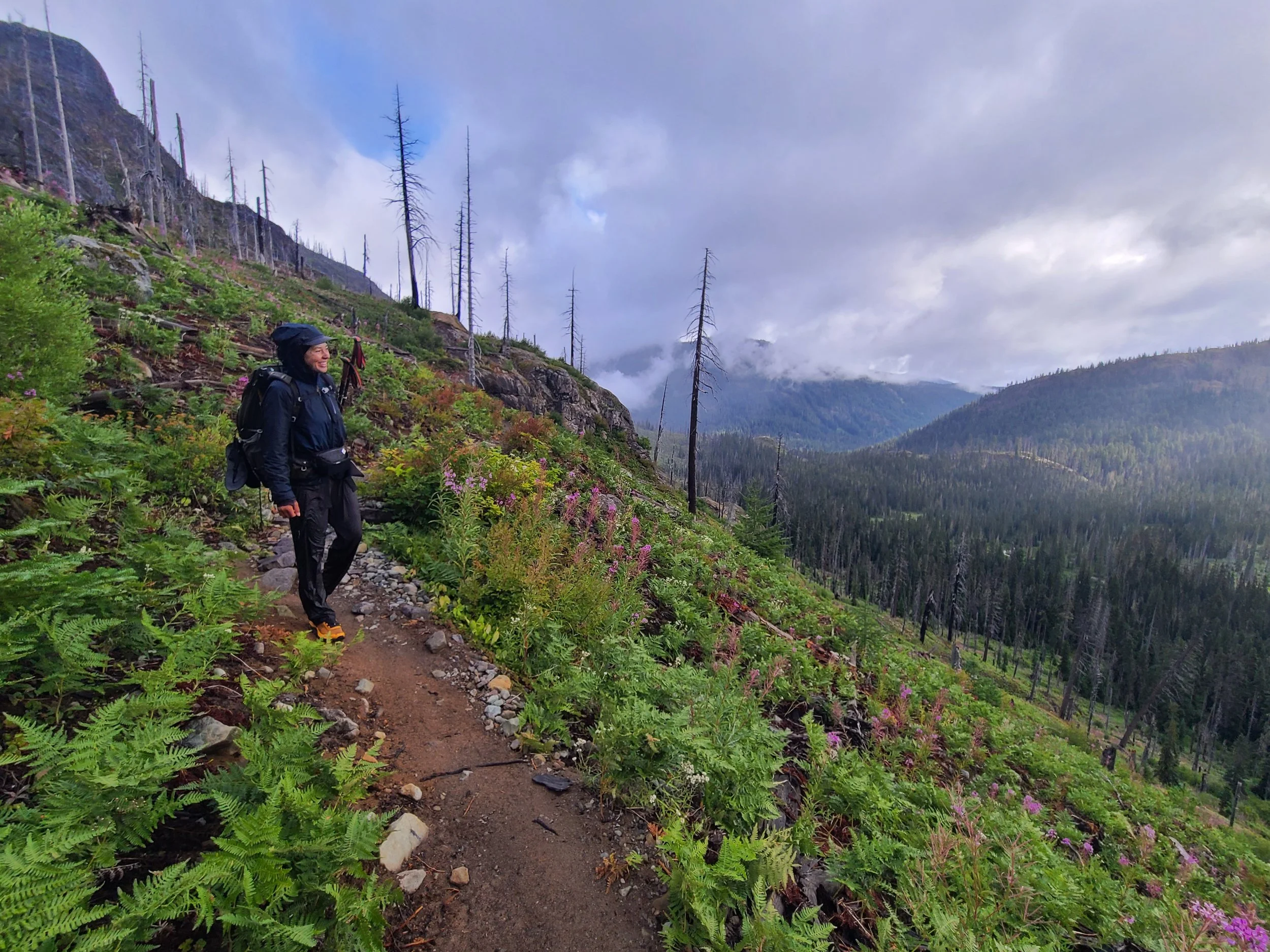 Perhaps this was the trail's way of continuing to test us– another lesson we could add to the toolbelt. We packed up our soggy tent and gear—ten pounds heavier from water weight—put on our wet clothes, and trudged on. My ear throbbed painfully; an infection had been brewing. It hurt to sleep and turn my head. But when the clouds finally broke and the sun poured through, everything changed.