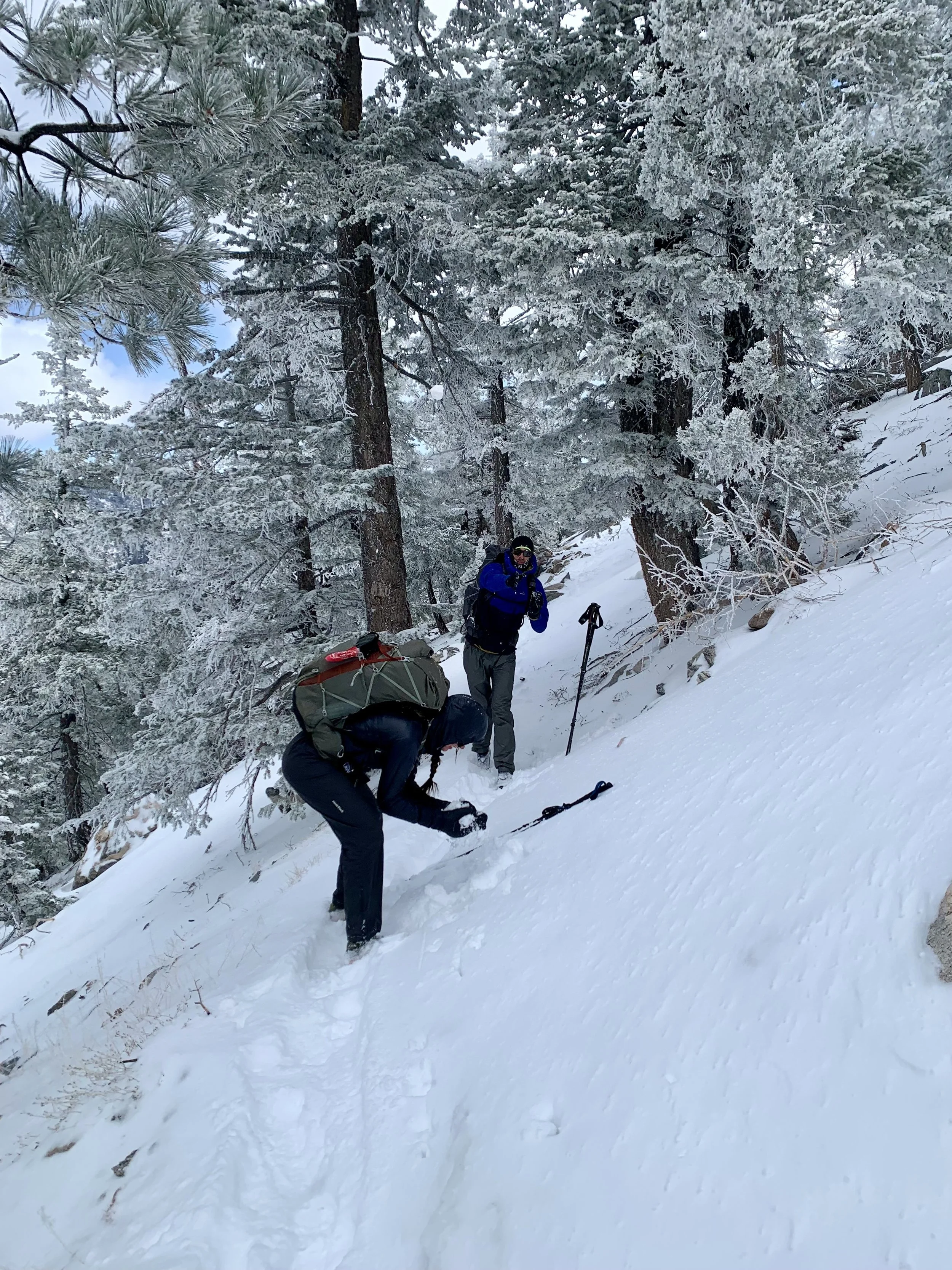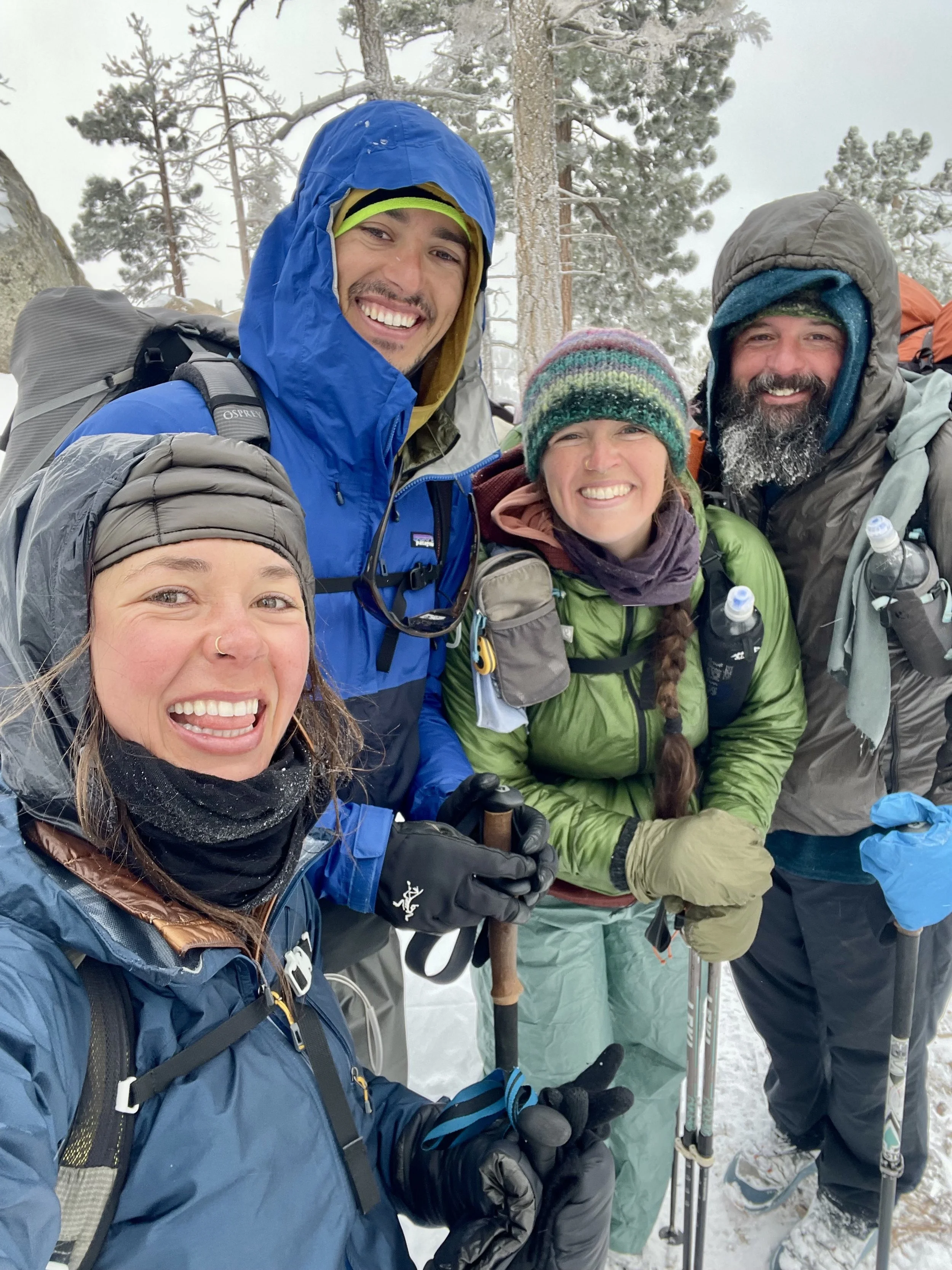 We made a plan. Fellow hiker Chris had a sister with a cabin sitting vacant in Big Bear, and she welcomed us all. We mapped an exit route: a fire road 12 miles away. We threw on every layer, and hiked out with trail friends Black Beard and Nettle. My feet were soaked and numb, having just sent home my waterproof socks, but the landscape was stunning under a blanket of fresh snow. We took our time, laughed through an impromptu snowball fight and finally reached the highway.